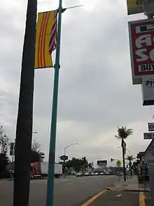 أمريكيون فيتناميون يرفعون علم فيتنام الجنوبية في سان دييغو الأمريكية احتجاجاً على ضم سايغون لفيتنام الشمالية