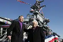 تم تدشينها سنة 2009 في احتفال بحضور الرئيس جورج بوش الأب الذي سميت حاملة الطائرات باسمه مع زوجته وبالإضافة إلى حضور شخصيات سياسية وعسكرية و الناس المدنيين المهمة.[5]