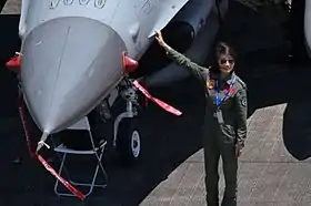 تخرجت معها خمس عشرة امرأة في ذلك العام، مما جعلها من بين أول النساء اللواتي حصلن على شهادة بالطائرة المقاتلة.[3]