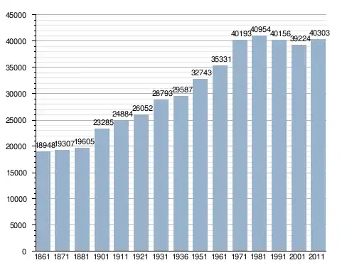 في سنة 1861 بلغ عدد السكان 18٬948 نسمة، وتطور العدد ليصل في سنة 2011 لـ 40٬303 نسمة.