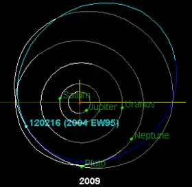|CitationClass=تم تجاهله (مساعدة) - "معلومات عن (120216) 2004 EW95 على موقع ssd.jpl.nasa.gov". ssd.jpl.nasa.gov. مؤرشف من الأصل في 15 ديسمبر 2019. الوسيط
