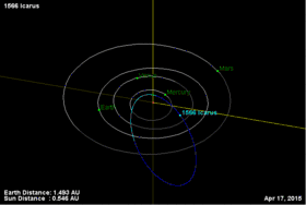 |CitationClass=تم تجاهله (مساعدة); تحقق من التاريخ في:|سنة=(مساعدة) - "JPL Close-Approach Data: 1566 Icarus (1949 MA)" (last observation: 2014-06-24; قوس المراقبة: 64.99 years). مؤرشف من الأصل في 01 مارس 2018. الوسيط