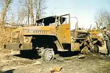 ![]() بي تي أر-80 ناقلة أفراد مدرعة تم تعطيلها من قبل المسلحين خلال الكمين. | |||||||