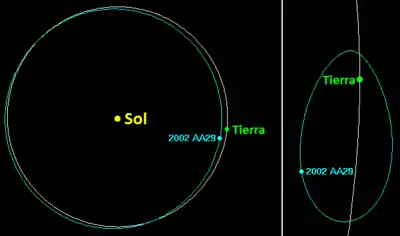 أي أن كويكب 2002 إيه إيه 29 يتسابق مع الأرض في مداره، فمرة يسبقها ومرة أخرى تسبقه الأرض ولكنهما لا يقتربان تماما من بعضهما البعض. في يوم 8 يناير 2003 اقترب الكويكب من الارض من الأمام حتى أصبح على مسافة 9و5 مليون كيلومتر، وهي أقل مسافة تحدث بينهما خلال كل مئة عام تقريبا. وعند تلك النقطة يسبق الأرض حتى يأتي إليها من خلف .
