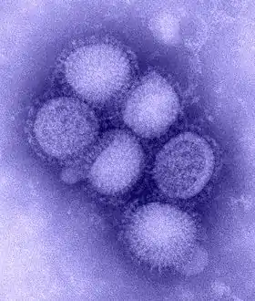 صورة تحدد فيروس إتش 1 إن 1 التقطت عبر المجهر الإلكتروني في معامل سي دي سي.