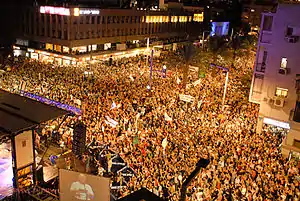 المتظاهرون خلال الاحتجاج الاجتماعي ، تل أبيب