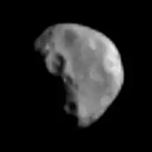 ![]() صورة للكويكب إيدا 243.بواسطة المسبار غاليليو النقطة الصغيرة على اليمين هي القمر داكتيل. | |