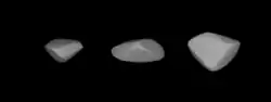 ![]() نموذج ثلاثي الأبعاد للكويكب أتوسا (810) على أساس منحنى الضوء. | |
