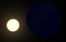 ![]() انطباع فني عن كوكب في مدار حول نجم 91 الدلو A . | |||