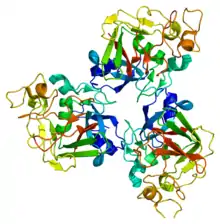 |CitationClass=تم تجاهله (مساعدة) - Tanio M, Kondo S, Sugio S, Kohno T (2007). "Trivalent recognition unit of innate immunity system: crystal structure of trimeric human M-ficolin fibrinogen-like domain". J. Biol. Chem. 282 (6): 3889–95. doi:10.1074/jbc.M608627200. PMID 17148457. الوسيط
