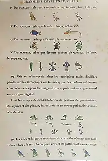 صفحة شامبليون المكتوبة بخط يده في كتاب قواعد اللغة المصرية