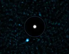![]() صورة باستخدام مقاريب عظيمة للنجم إتش دي 95086 وكواكبه. | |||