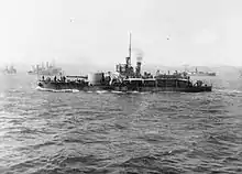 سُحبت السفينة إلى مالطا في يوليو 1915، حيث حصلت على تسليحها الرئيسي. ولاحقًا انتقلت إلى مودروس في جزيرة ليمنوس في اليونان، وشاركت لاحقًا في الدفاع عن قناة السويس.