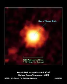 في يناير 2009 التقط مقراب سبيتزر الفضائي صور لثلاثة أقراص حطام حول أتش أر 8799: