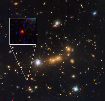 - "Hubble helps find candidate for most distant object in the Universe yet observed". ESA/Hubble Press Release. مؤرشف من الأصل في 12 يونيو 2018. اطلع عليه بتاريخ 15 فبراير 2013. الوسيط