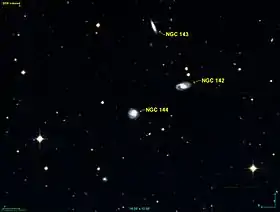 - NGC 144 على موقع ويكي سكاي: DSS2, SDSS, GALEX, IRAS, Hydrogen α, X-Ray, Astrophoto, Sky Map, Articles and images