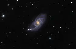 المجرة في خضم الاندماج مع مجرة صغيرة 153 NGC. المجرة لديها عدة دوامات المشرقه والزرقاء والأتربة. إحدى السمات الملحوظة للمجرة هي وجود فجوة كبيرة ربما تكون ناجمة عن سحب جاذبية من مجرة أصغر.