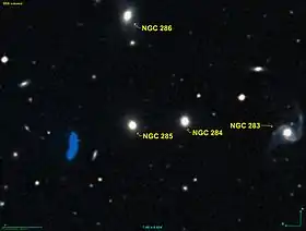 - NGC 285 على موقع ويكي سكاي: DSS2, SDSS, GALEX, IRAS, Hydrogen α, X-Ray, Astrophoto, Sky Map, Articles and images