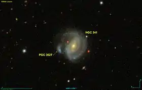 NGC 341 هي مجرة حلزونية تقع في كوكبة قيطس (كوكبة).[4] تم اكتشافه في 21 أكتوبر 1881 من قبل العالم الفلكي إدوارد ستيفان. لديه مجرة مصاحبة NGC 3627 وتسمى أحيانا NGC 341B. لهذا السبب أدرج في أطلس هالتون من المجرات الغريبة.[5]