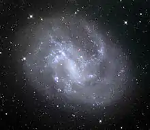 ![]() صورة بالأشعة فوق البنفسجية للمجرة إن جي سي 4395 بواسطة المقراب الفضائي قالكس. |
