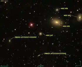 - NGC 501 على موقع ويكي سكاي: DSS2, SDSS, GALEX, IRAS, Hydrogen α, X-Ray, Astrophoto, Sky Map, Articles and images