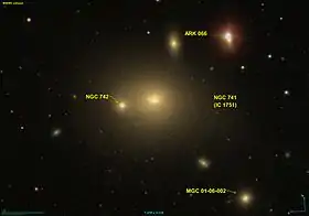 - NGC 741 على موقع ويكي سكاي: DSS2, SDSS, GALEX, IRAS, Hydrogen α, X-Ray, Astrophoto, Sky Map, Articles and images