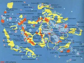 ![]() مجموعة كوكبة الملتهب، ويُرى موقع RW Cephei إلى اليسار | |