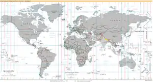 UTC + 05: 45: الأزرق (ديسمبر) والبرتقالي (يونيو) والأصفر (على مدار السنة) والأزرق الفاتح (المناطق البحرية)