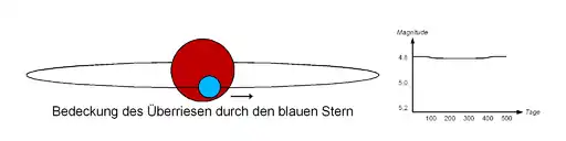 لا يبين المنحنى الضوئي للنظام في في الملتهب تغيير أثناء عبور النجم الأزرق أمام العملاق العظيم في في الملتهب إيه .